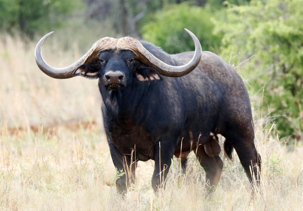 The Buffalo is one of the so called Big 5 animals, an old hunter’s term given to the 5 most dangerous animals to hunt in Africa. In the buffalo’s case it is mainly due to their dangerous and cunning nature. They do not have very good eyesight but their hearing and smell is exceptional. There are many hunting tales that mention wounded buffaloes setting ambushes for hunters that follow them, by circling back on their own tracks, to stand and wait for the hunters that are tracking them. A number of hunters were injured or killed by buffaloes through the years while hunting them.